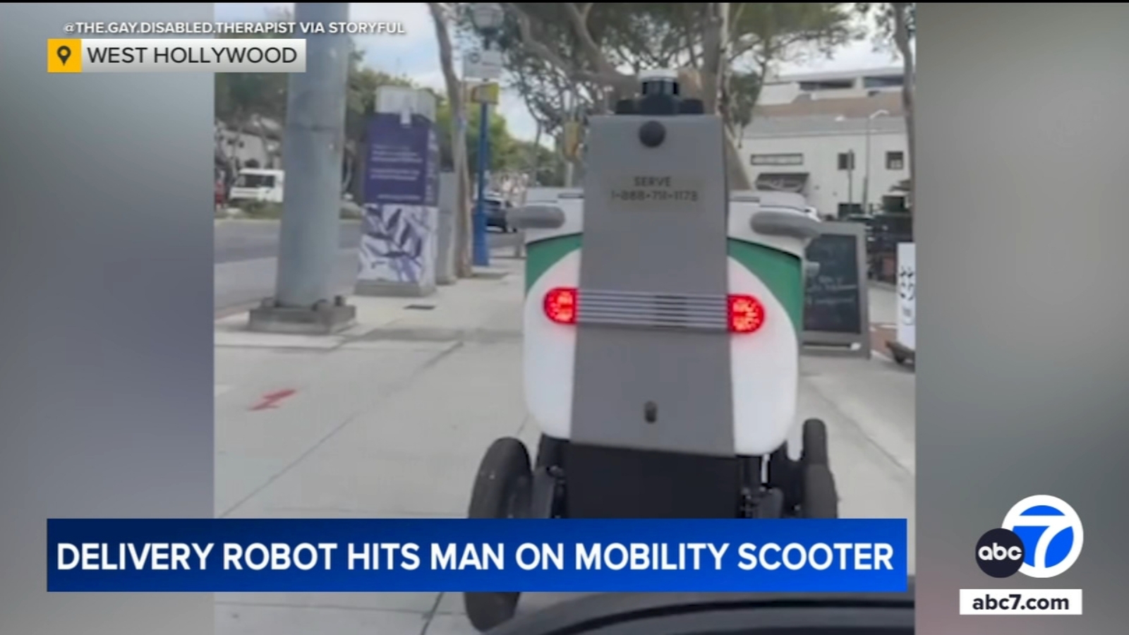 WEST HOLLYWOOD, Calif. (KABC) — Video footage shows a man with cerebral palsy being repeatedly hit by a delivery robot as he’s riding his mobility scooter on a sidewalk in West Hollywood.